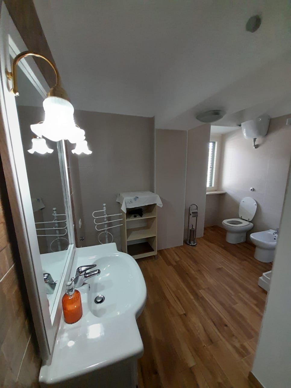 Il bagno é luminoso, areato e molto spazioso. Esso anche essendo uno solo non viene mai condiviso infatti le due camere della nostra struttura vengono affittate in modo alternato per motivi di privacy e di sicurezza dovuti al Covid-19.